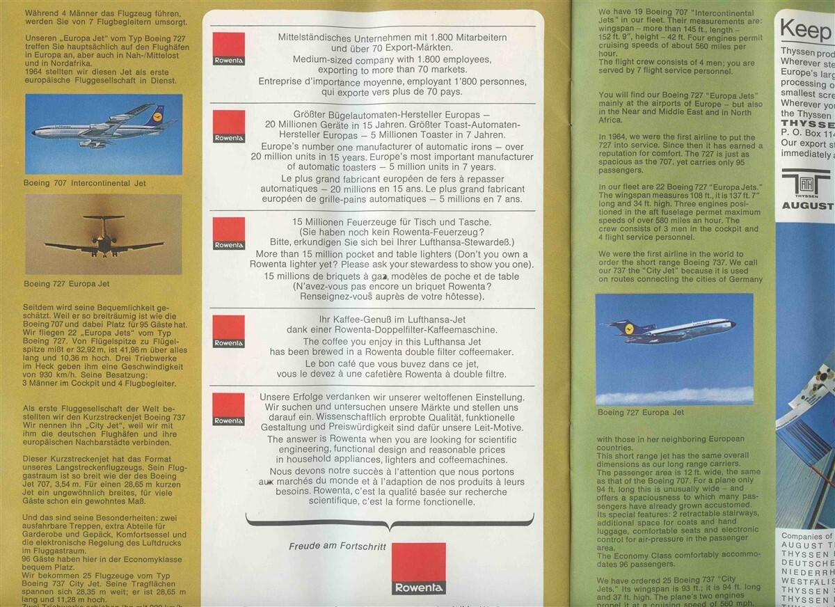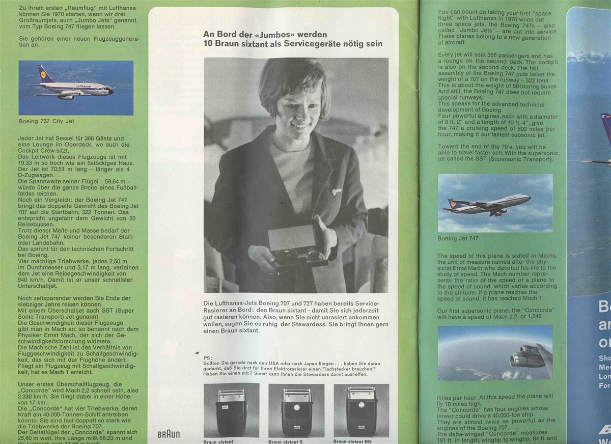 A 28 page booklet with 8" x 9 1/2" pages of maps depicting the Lufthansa routes to around the World. Circa 1970's. With Airline and airplane information in German and English. Lufthansa Fluggast Streckenatlas