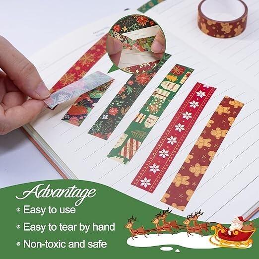 ? High-Quality Washi Tape ? Christmas washi tape set are made of washi material, soft and smooth on surfaces, with nice viscosity and the color is durable. Just clean the surface you want to stick the washi tape, then tear off the tape paste it on your item, pressing it on the surface firmly, easy to stick and remove without any residue, can be kept and applied for a long time.