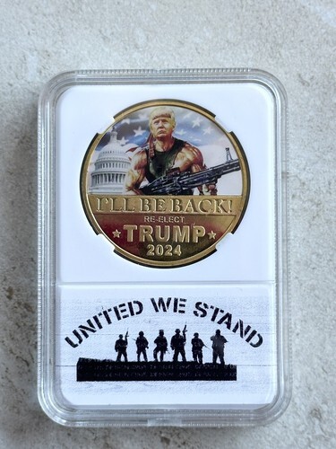 Trump "I'll be back" 2024 Gold color MAGA Re-Elect Coin With 3D Display Case.