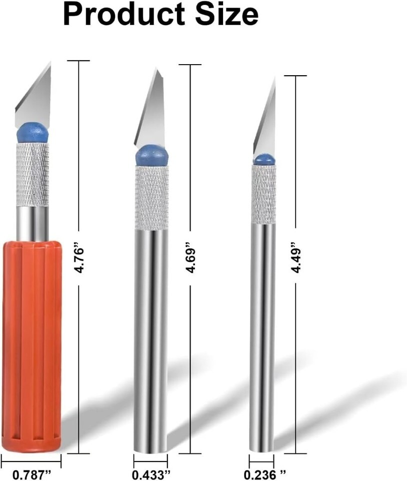 Professional Configuration, All - in - One: This set includes 3 craft knives with different - sized handles. The largest handle has a diameter of 0.7 inches and a length of 5 inches, while the other two handles are 4.6 inches and 4.4 inches long respectively. It is paired with 10 high - quality blades of various shapes, meeting diverse cutting and carving needs