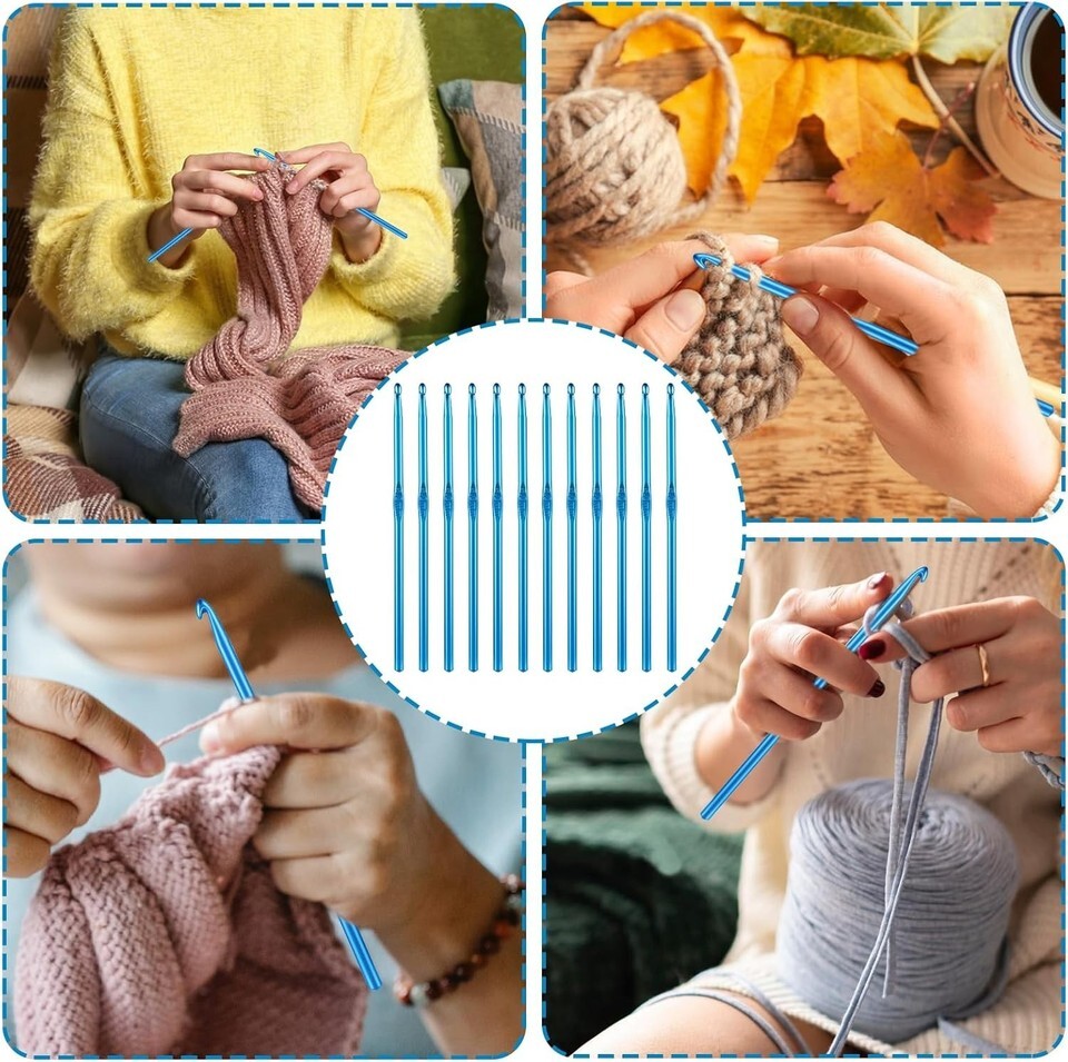 Oruola 12pcs Crochet Hook 5mm, US Size H (Size 8) Crocheting Hooks for DIY Craft, Aluminum Knitting Needles Craft Yarn, Crochet Needles for Knitting Scarf, Great Gift for Crochets Beginners(Blue)