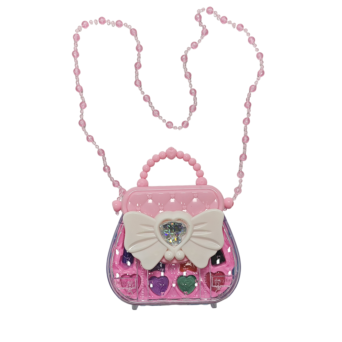 2. ?Cute Handbag Design, Portable Stylish?Designed as a lovely pink handbag with a beaded handle and detachable shoulder strap, this makeup set is perfect for kids to carry around. The compact size makes it easy to take on trips, playdates, or parties, letting your little one enjoy makeup play anytime, anywhere.