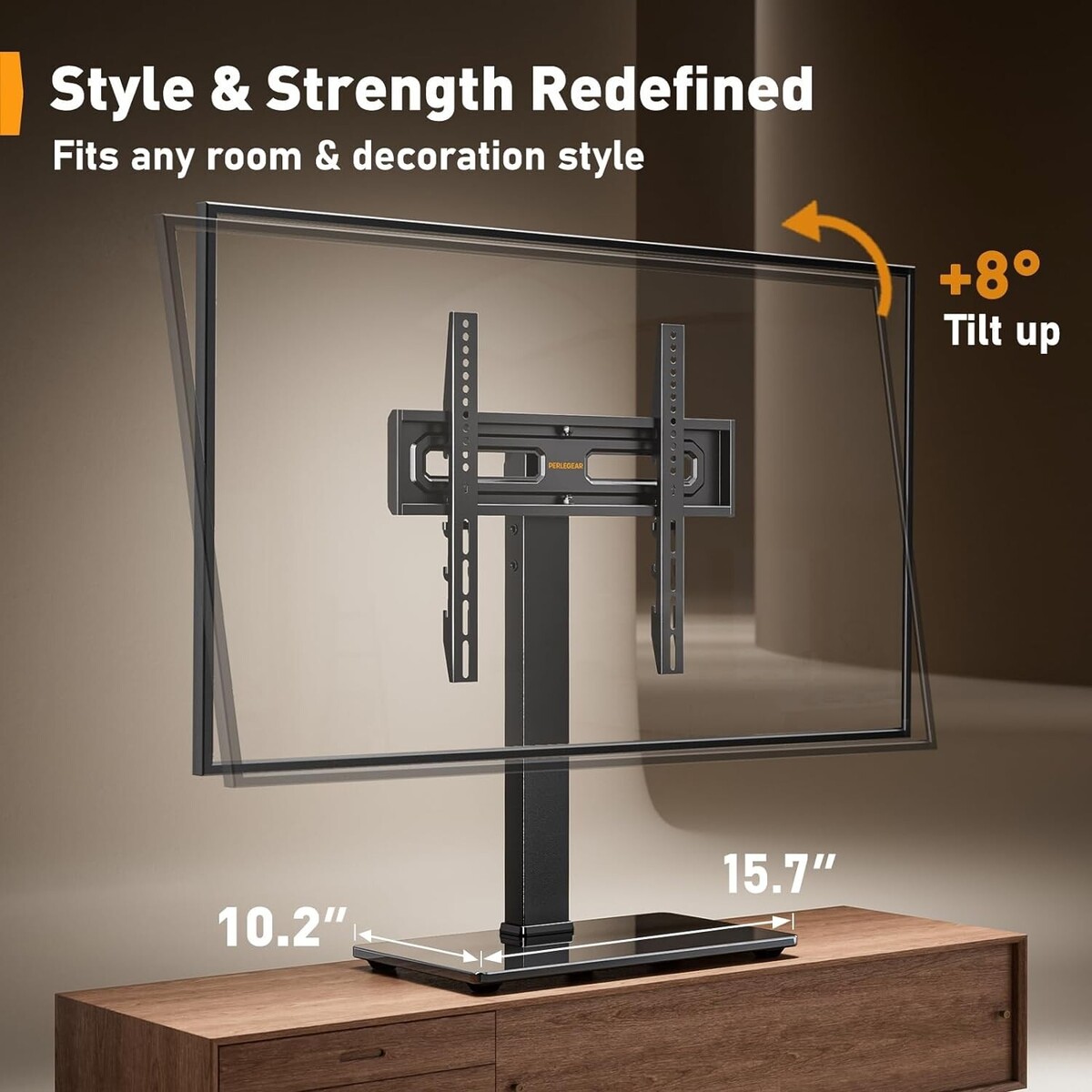 ?SWIVELS 60 - Maximize Your Viewing Experience?This universal swivel TV stand allows you to swivel your screen 30 left or right to direct the screen anywhere in the room. The TV stand mount can tilt up 8, the perfect solution for large TVs that may slightly lean forward, making it possible for you to get an optimal viewing without being restricted by the location.