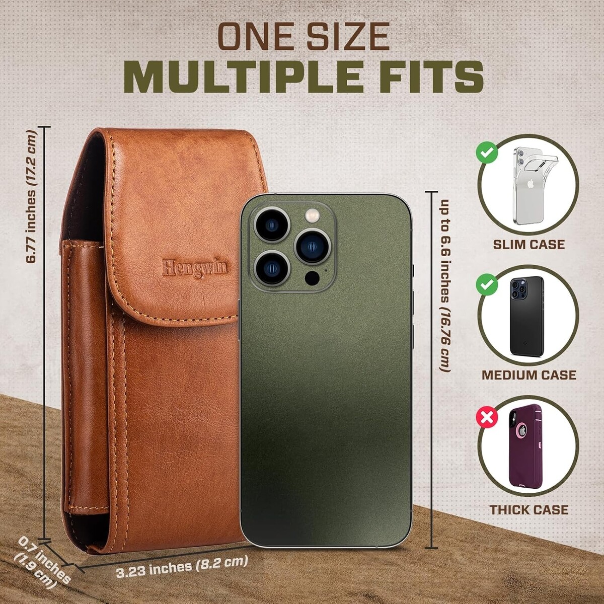 Outer Size: 3.7 x 1 x 7 inches (inner size: 3.23 x 0.74 x 6.77 in) men belt holster. A handy and lightweight carrier that is useful to store phone, fit for iPhone 17 Pro Max iPhone 16 Pro Max iPhone 16 Plus iPhone 15 Pro Max iPhone 15 Plus iPhone 14 Pro Max iPhone 14 Plus iPhone 13 Pro Max iPhone 12 Pro Max iPhone 11 Pro Max iPhone XS Max iPhone 8 Plus 7 Plus 6 Plus 6s Plus, Samsung Galaxy Note 20 Ultra 10+ 9 8 S23 Ultra S21 Ultra S20+ S10+ S9+ S8 Plus etc with a thin or medium case on