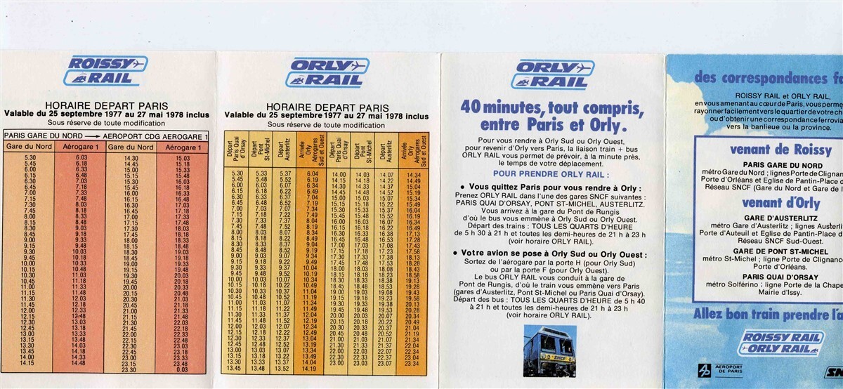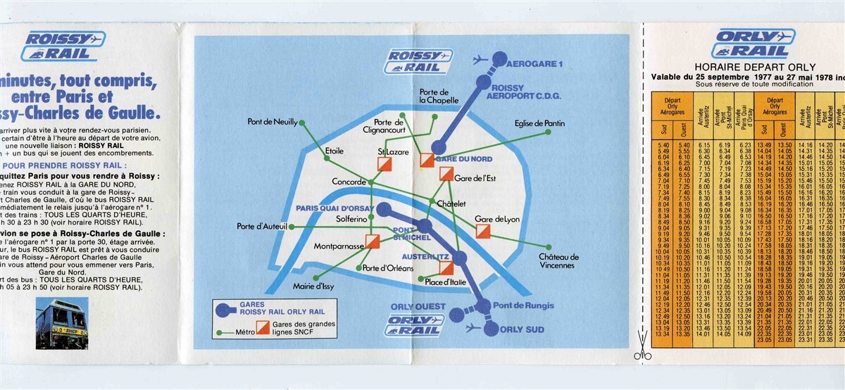 Roissy Rail Orly Rail Paris France Schedules Route Map 1977-78