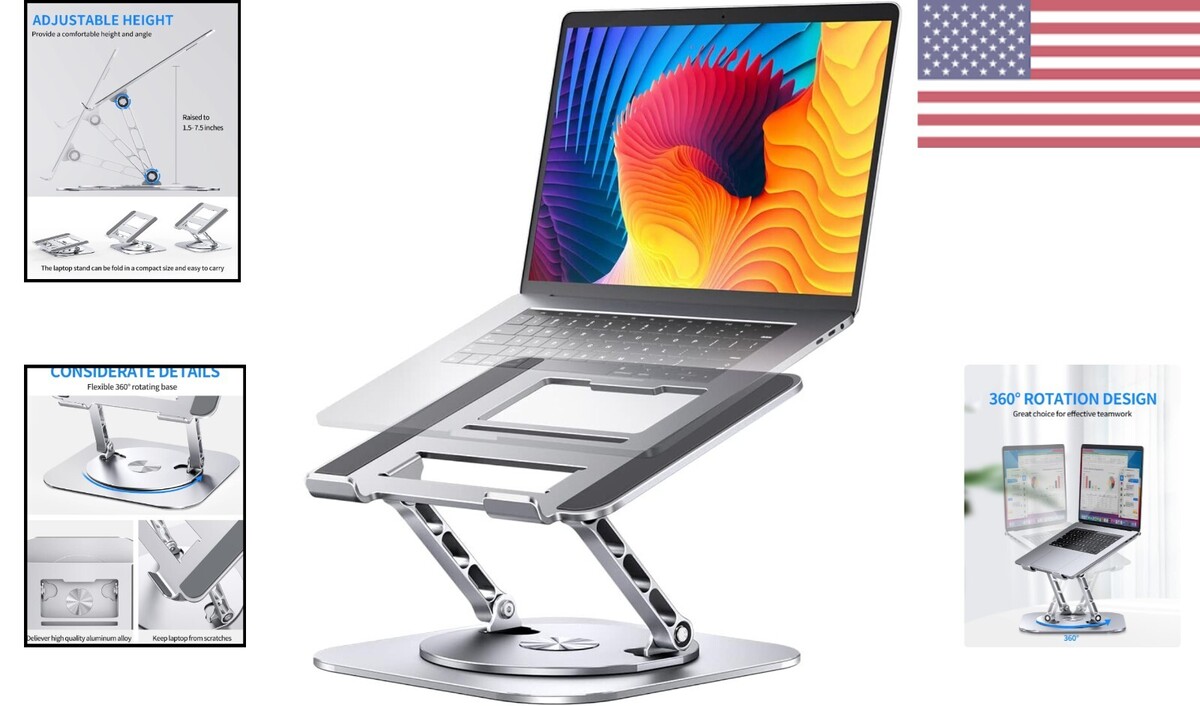 With its 360-degree rotation capability, wide compatibility, and heat dissipation design, our laptop stand is the perfect solution for improving your workspace. Whether you're working on a group project, attending a meeting, or simply looking for a more organized desk setup, this stand has got you covered.