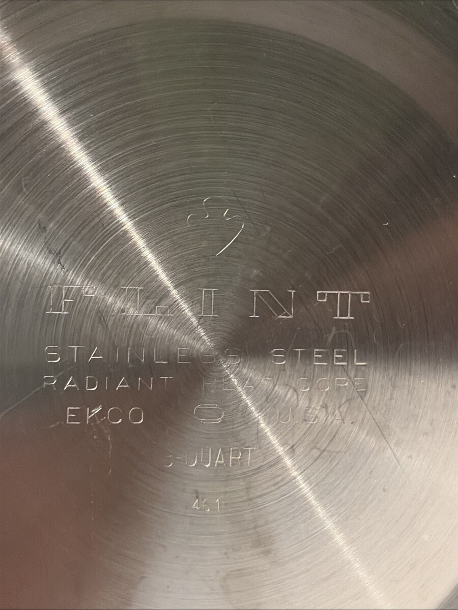 Flint EKCO Stainless Steel Radiant Heat Core 3 Quart Saucepan& Lid USA