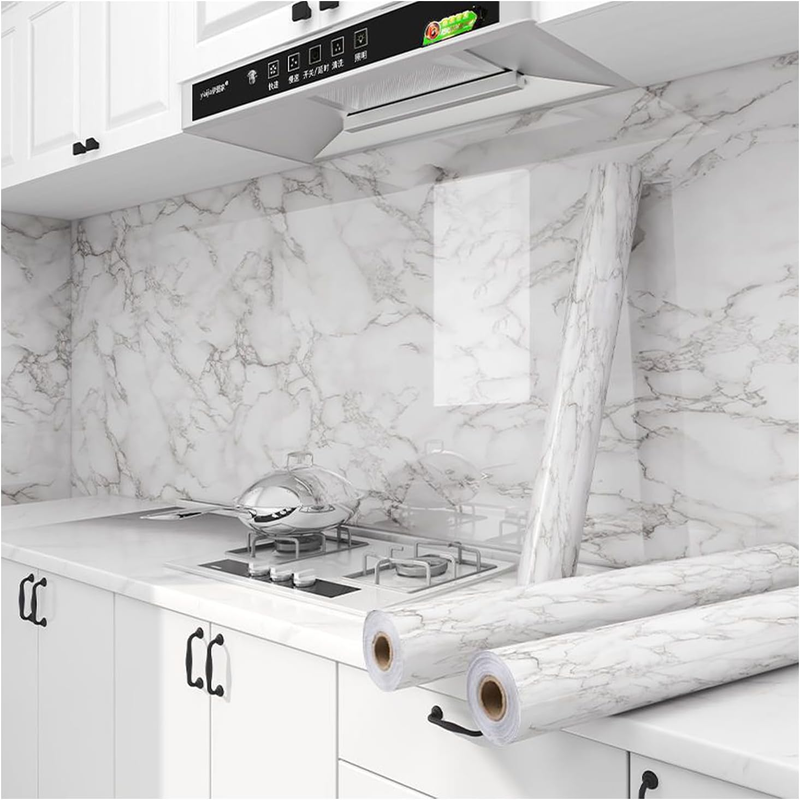 White Gray Contact Paper Marble Wallpaper Peel and Stick Countertops Backsplash (11.8"X120")