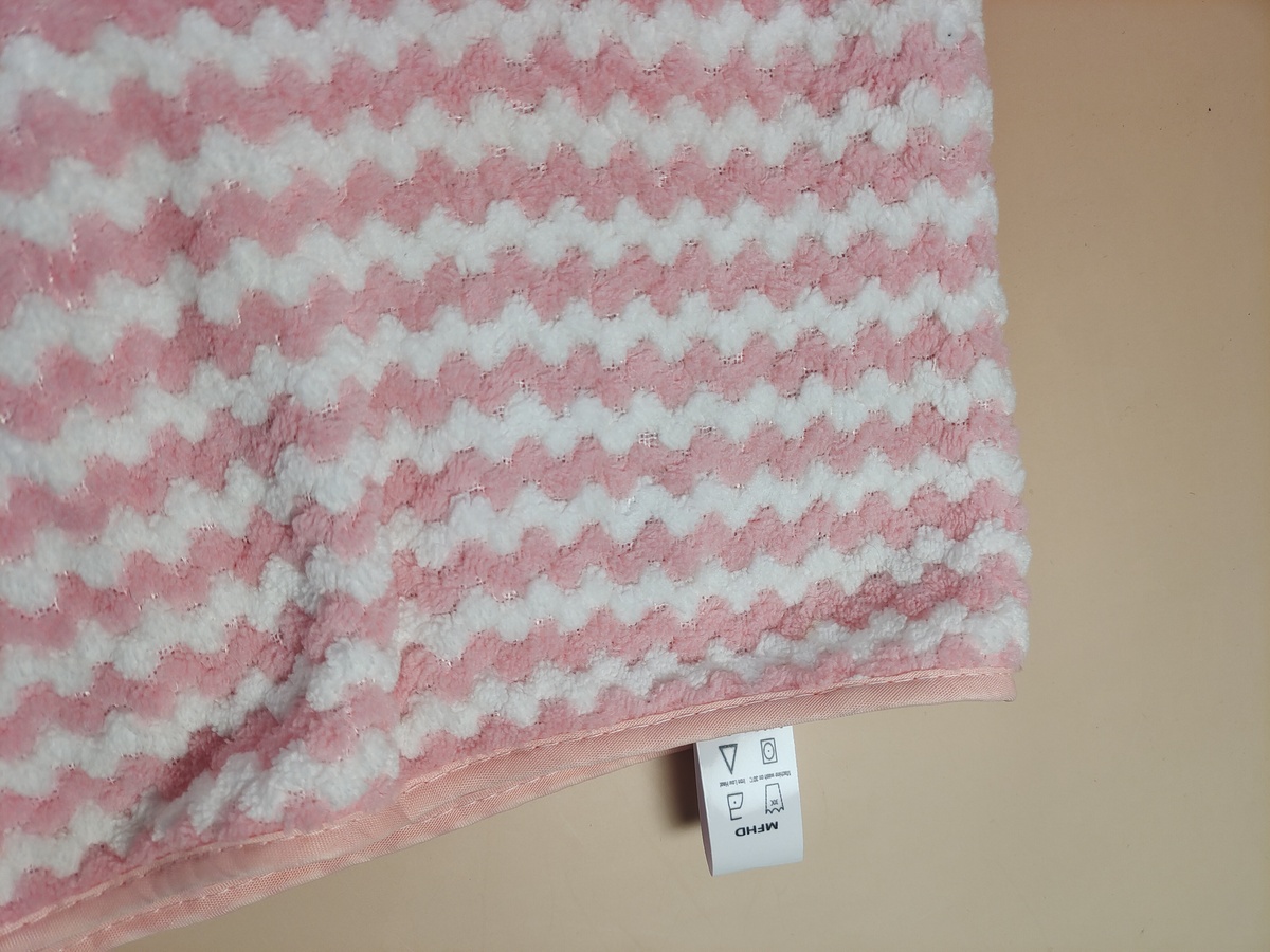 Neatly stitched pink binding prevents fraying and extends the towel's lifespan, maintaining shape after repeated washes.