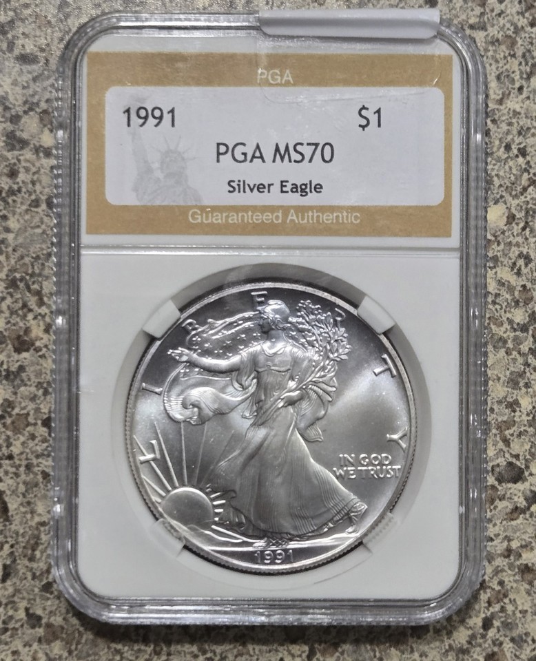1991 American Silver Eagle $1 Gem Brilliant Pga 70 Certified Vintage Coin Bullio