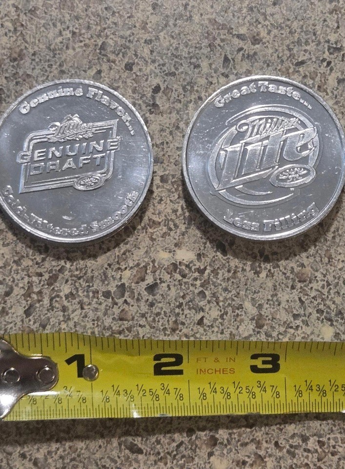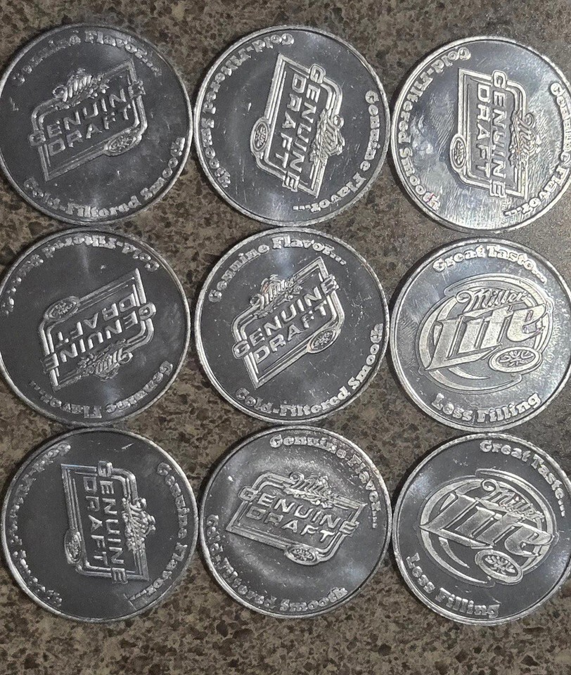 9 Vtg Miller Genuine Draft Plain Aluminum Medallion Coin Token