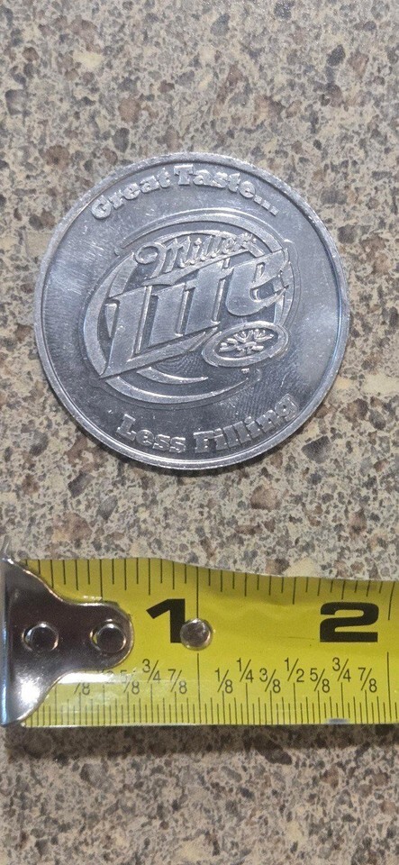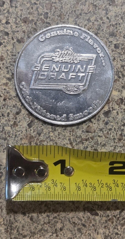 This vintage Miller Genuine Draft token is crafted from plain aluminum, featuring a medallion coin design that reflects authentic brewery memorabilia. Ideal for collectors and enthusiasts, it offers a tangible piece of brewing history with its durable construction and classic branding