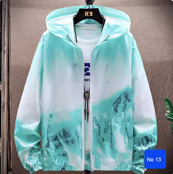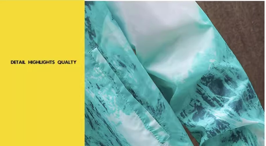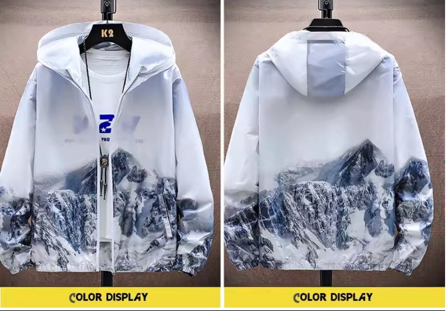 The jacket features a hooded design for added sun protection and a stylish snow mountain print, making it both functional and fashionable. Ideal for outdoor fishing, hiking, camping, travel, and daily summer wear.