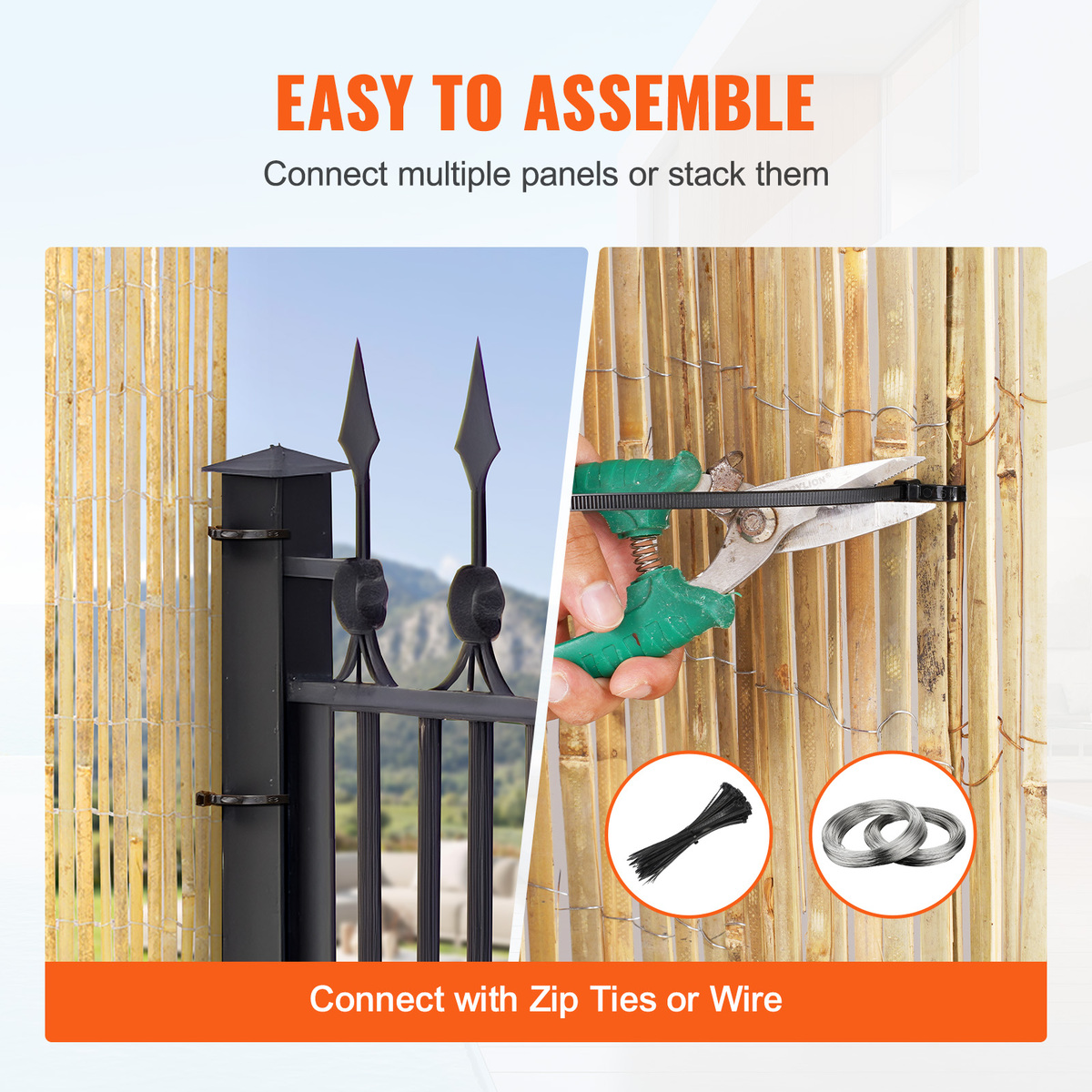 Easy Installation: Simply unpack and attach the bamboo fencing 6ft high roll to any railing or post with suitable fasteners (like zip ties or wire). Easy to set up on flat or curved surfaces, saving time and effort. Please measure your space accurately before purchasing. The fence surface may have minor splinters; we recommend wearing gloves during installation.