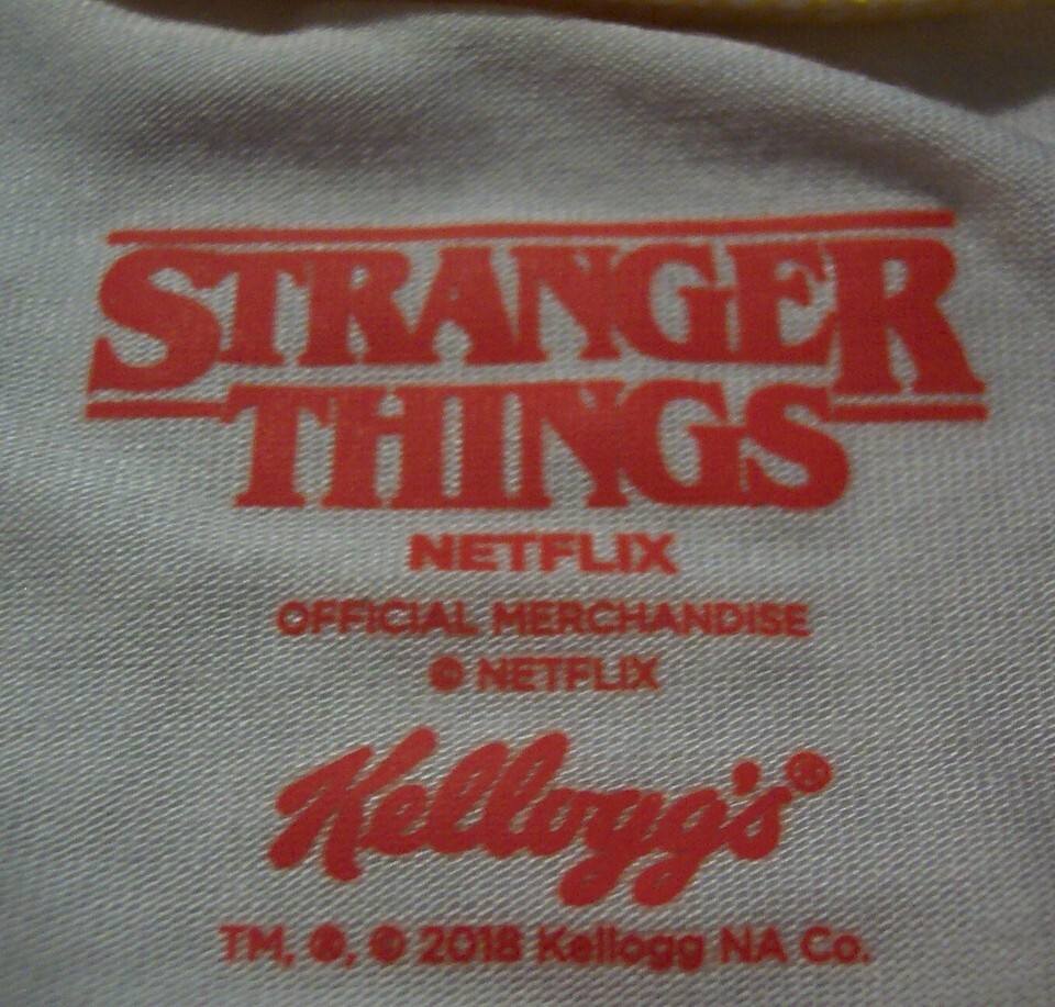 This is a VINTAGE 70's STYLE WOMEN'S TEEN STRANGER THINGS ELEVEN EGGO Netflix T-shirt. It is a Size MEDIUM and is NEW with the tag. It is 19 inches from armpit to armpit and 27 inches in length. Officially Licensed by Netflix and Kellogg's. It has the 70's 3/4 length sleeves. Combine auctions to save on shipping. AG
