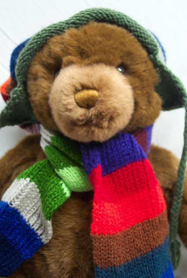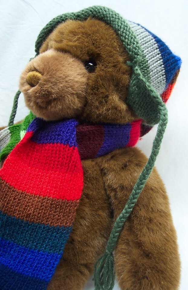 GUND 2000 Lord & Taylor BROWN BEAR W/ HAT & SCARF 18" Plush STUFFED ANIMAL TOY