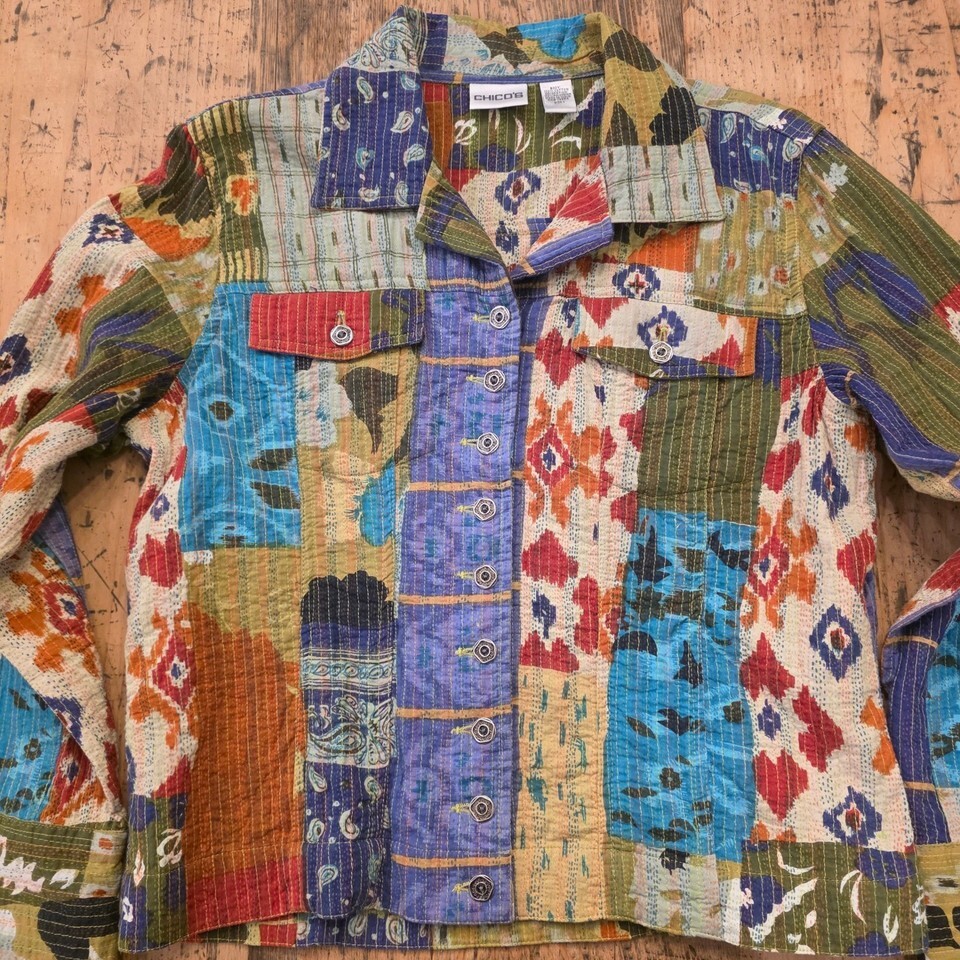 CHICO'S Sz 1/M Patchwork Ikat Jacket Boho and 23 similar items