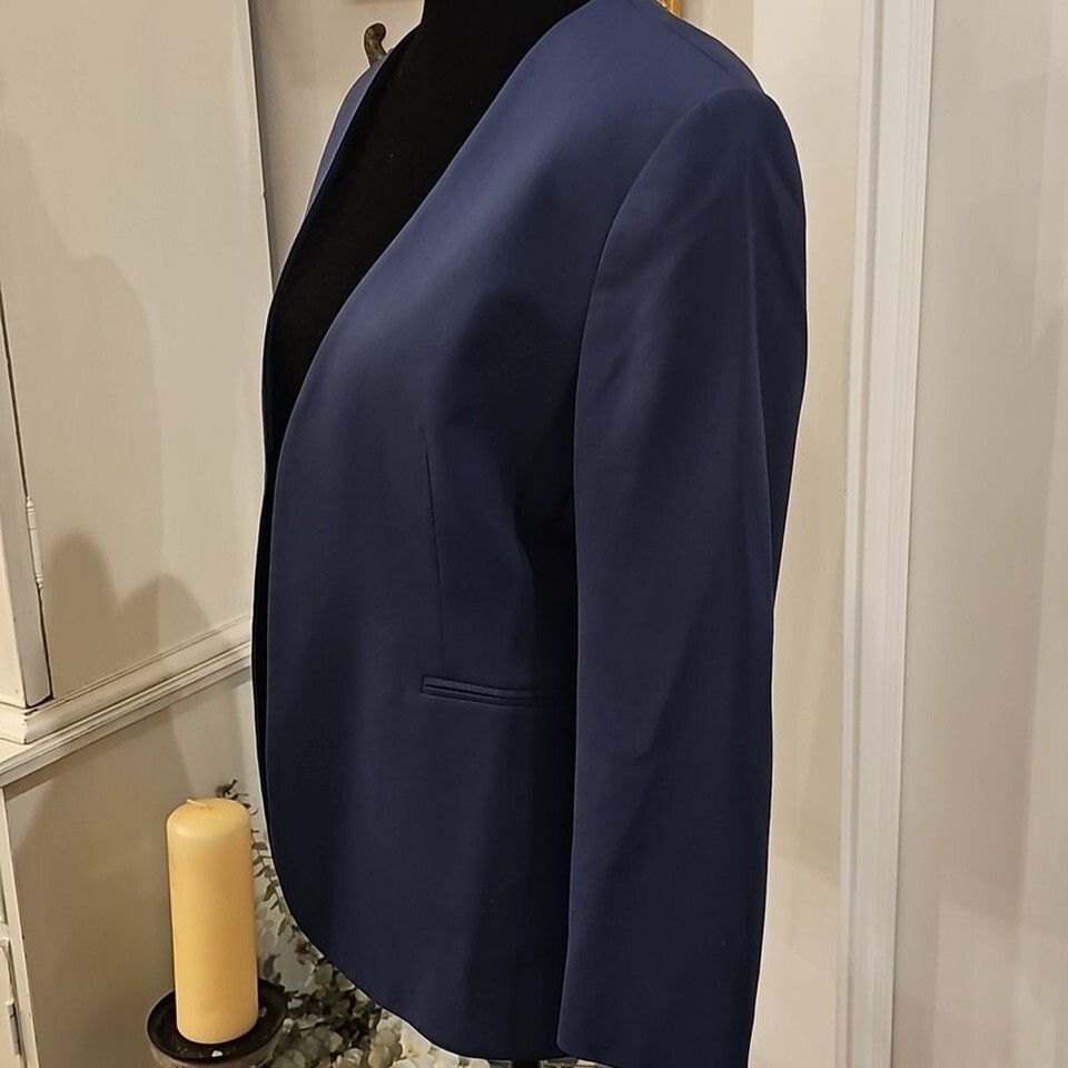 THEORY Lindrayia Navy Open-front Wool Blend Blazer Size 6 Career Academia Preppy