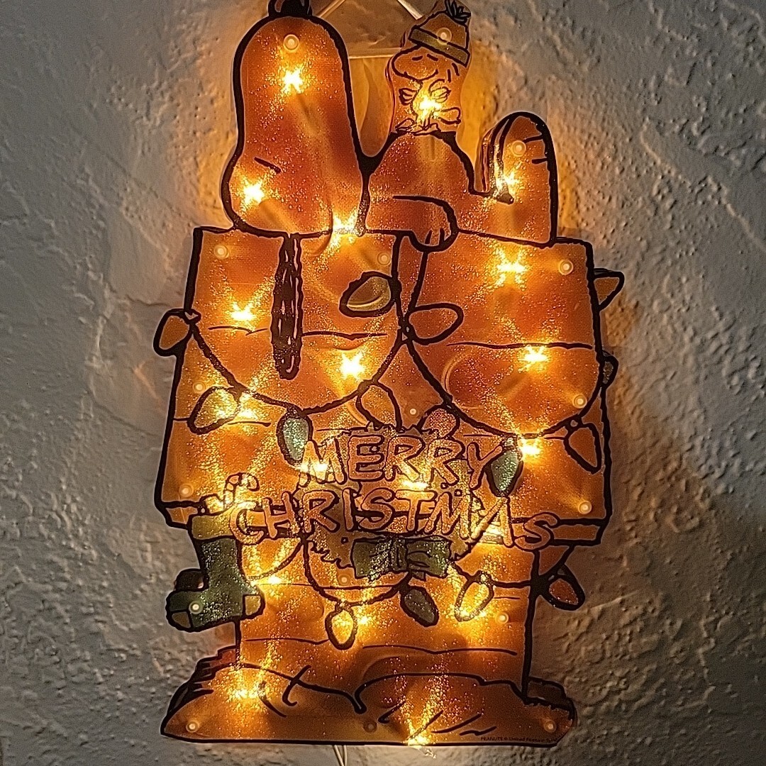 Vtg Snoopy Doghouse Light Up Ornament In Out Door Gold XMAS Yard Window Peanuts