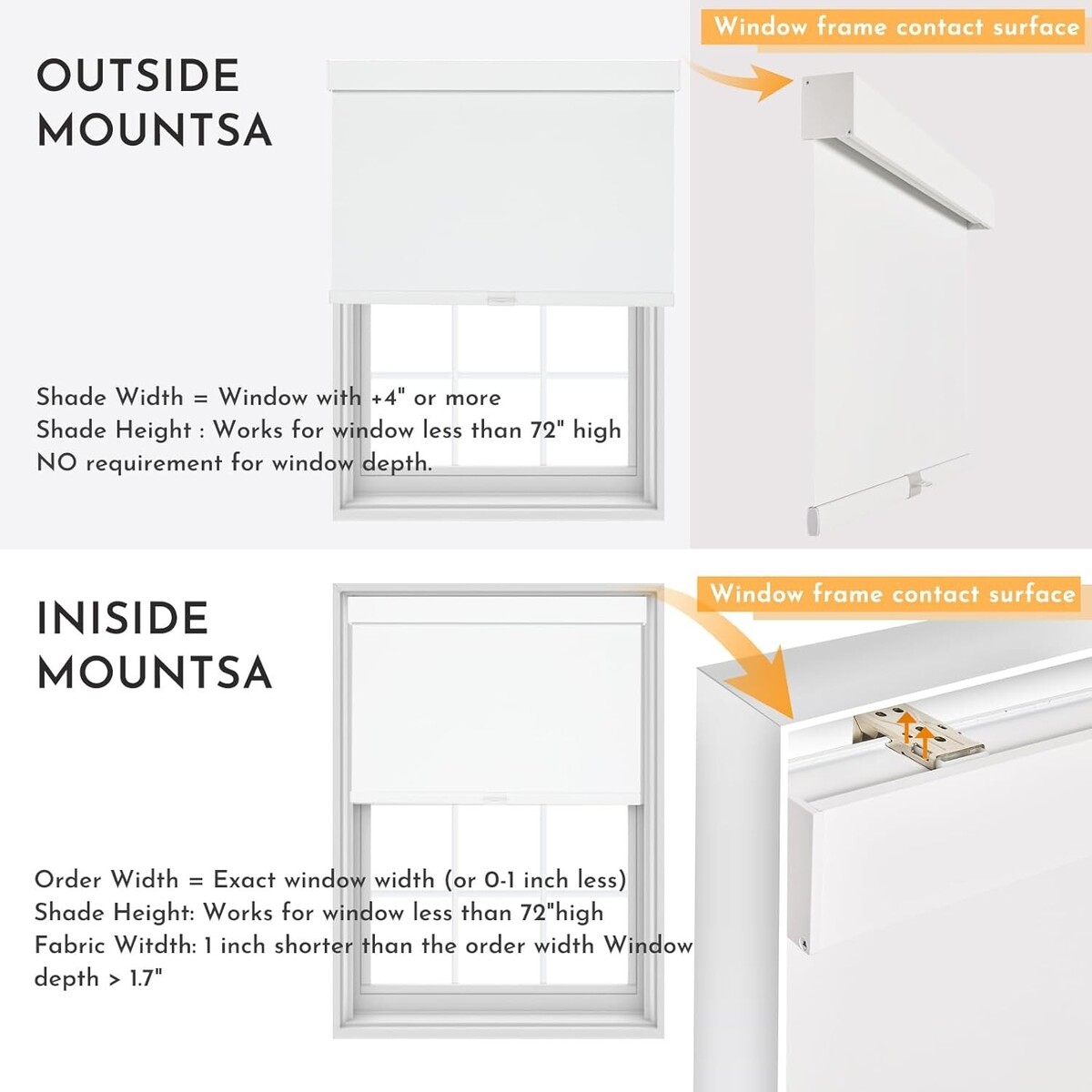 ?Support Customization??Fabric width will be 0.8" shorter than the size of the valance. Our roller shades can be used for either inside mount or outside mount. You will also receive an installation guide, installation hardware
