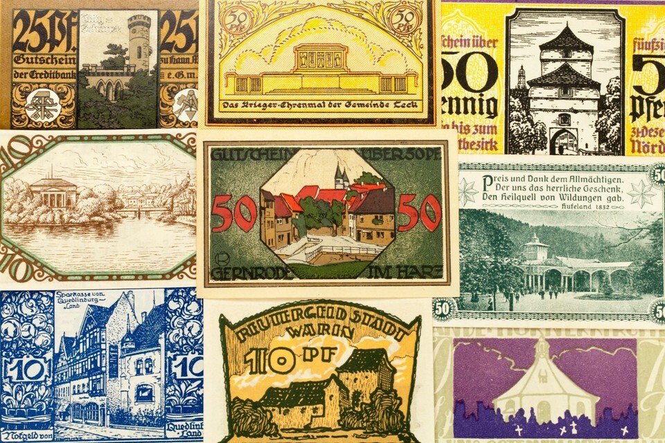 Issued by: Bad Kosen, Bad Wildungen, Brande-Hornerkirchen, Gernrode a. Harz, Grottkau, Guben, Hannoversch Munden, Helgoland, Koln, Lauenburg i. Pommern, Leck, Nordlingen, Osnabruck, Pretzsch, Quedlinburg-Land, Sternberg, Warin, Zerbst i. Anhalt