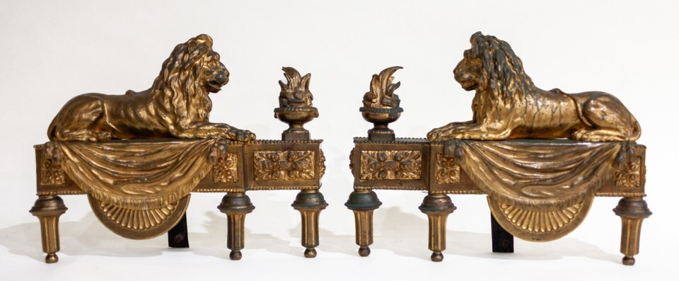 19th Century Pair of Ormolu Lion Chenets and similar items
