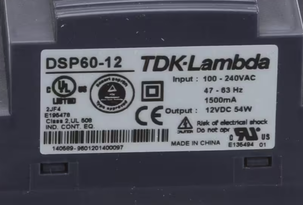 The Convotherm DSP60-12 / 140589-9601201400097 Power Supply is a genuine Convotherm OEM power supply designed to provide stable and reliable 12VDC power output for Convotherm combination oven steamers. Rated at 60W and UL approved, this power supply ensures consistent operation of electronic components and controls. It is the correct replacement when the original unit fails, causes voltage instability, or no longer delivers proper output.
