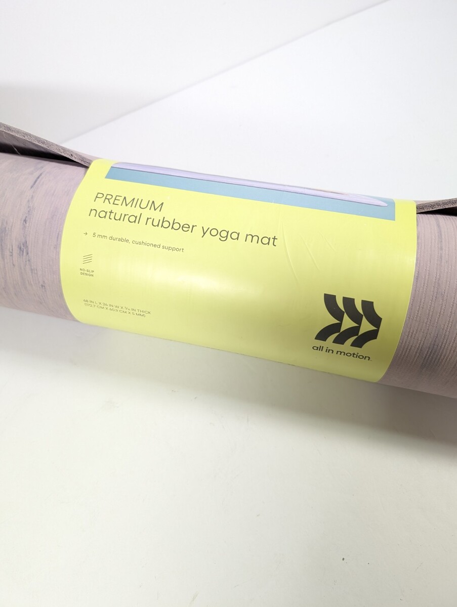 ALL IN MOTION RUBBER YOGA MAT 5MM VIOLET PATTERN LOW TACK GRIP 68" x 24" New