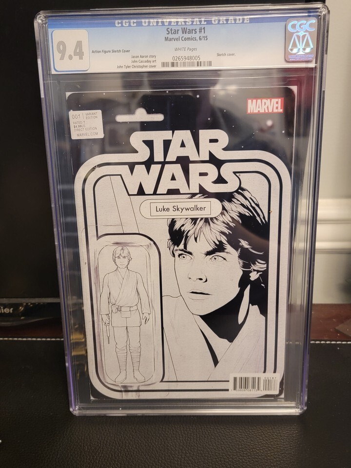 Star Wars #1 Luke Action Figure Sketch Variant CGC 9.4 NM Marvel 2015 C2E2 BW
