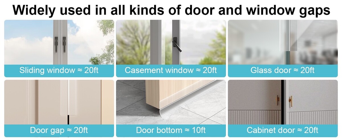 Multiple Scenarios/Uses - Weather stripping door seal can be used for the bottom and side of sliding doors, steel windows, security doors, wardrobe doors, thresholds, shower doors, front doors, etc.