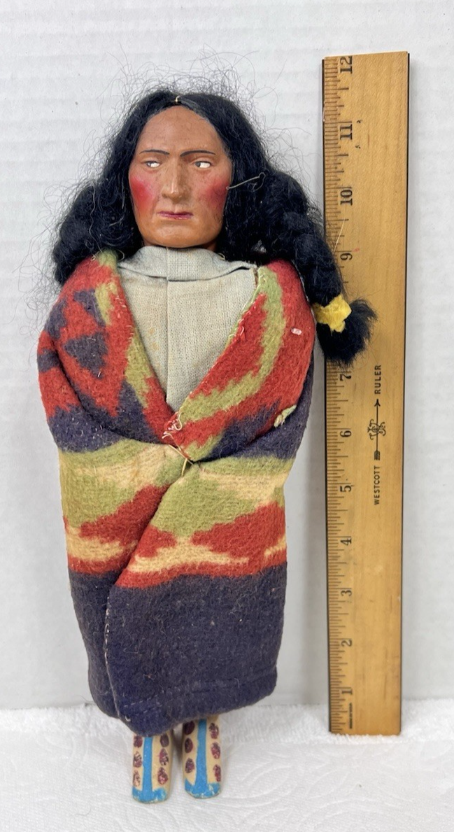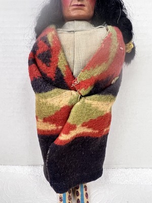 Vintage Skookum Male Indian Doll Pendelton Style Blanket 11 1/2 inches Tall In nice clean shape there was a tag on the bottom of his shoe but it's gone. The face is in great shape