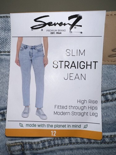 Elevate your denim game with these Seven7 slim straight jeans in Lynx color. Designed for women with a size 12, these high-rise jeans have a flattering slimming effect that will make you feel confident and comfortable all day long. The classic seven pockets design, combined with the straight style and the slim fit, make these jeans suitable for any occasion, whether you're going to work or out with friends. The brand's quality is reflected in the details of these jeans, which are made to last and withstand the test of time.