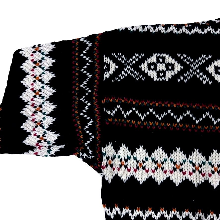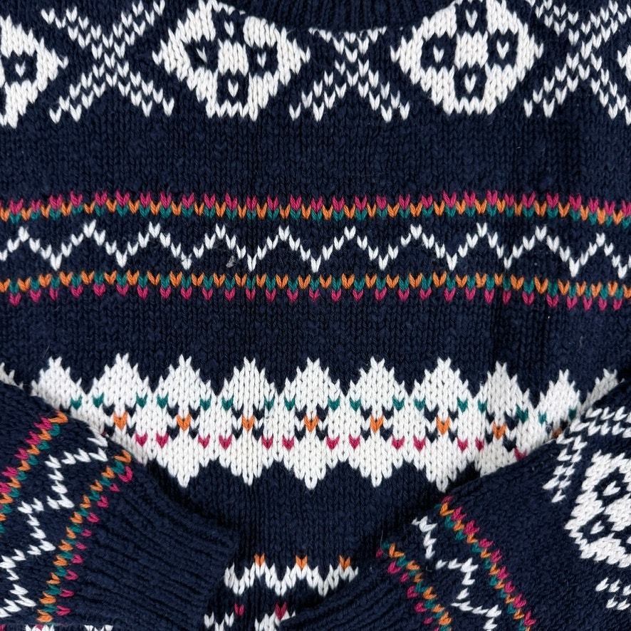 What you?ll love about this American Portrait sweater is the bold, high-contrast Nordic Fair Isle design?deep navy ground layered with crisp ivory geometrics and fine multicolor accent rows that feel both classic and quietly striking. It?s a true 1980s heritage knit with strong visual rhythm and cozy presence.