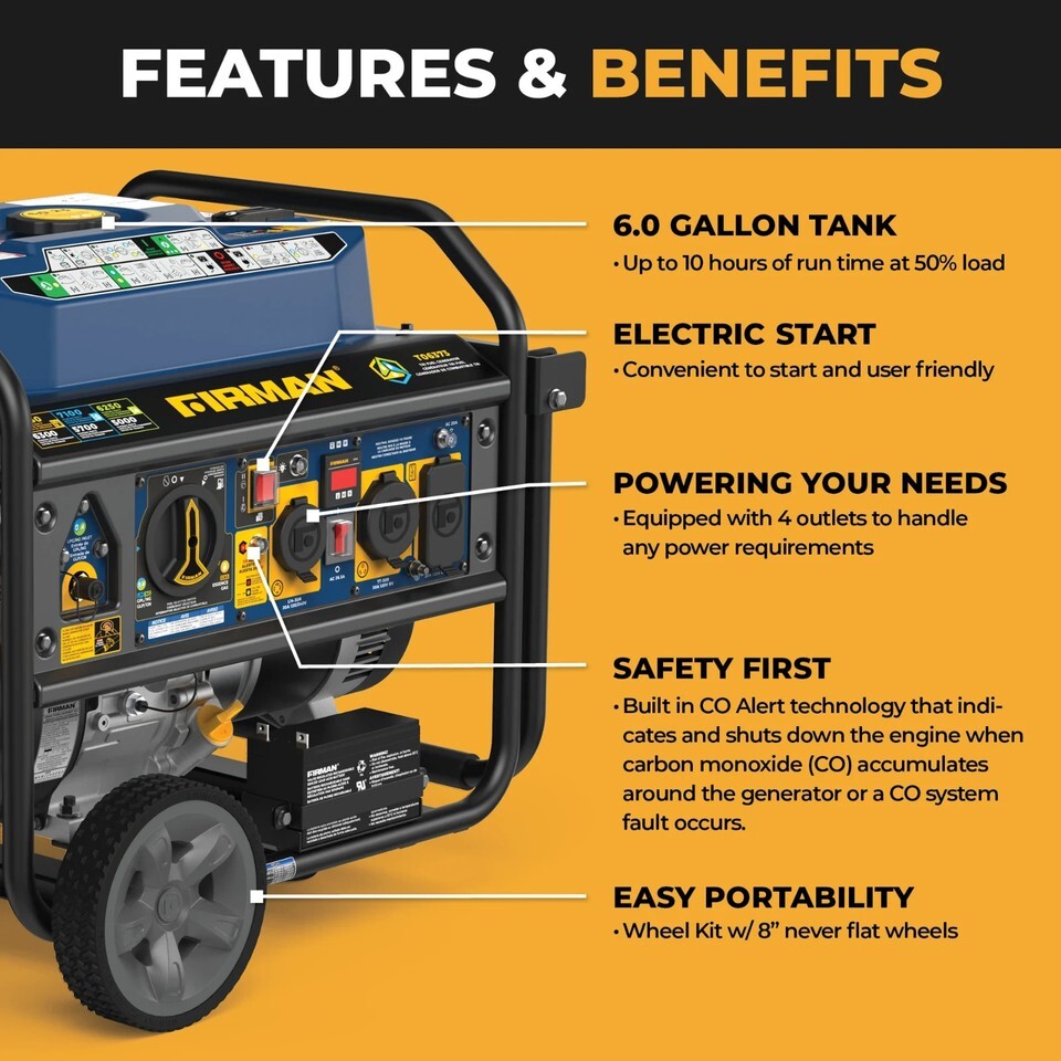 FIRMAN ELECTRIC GENERATOR TRI FUEL 6300W RUNNING 7850W PEAK HOME RV PORTABLE NEW