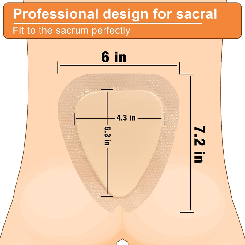?Easy to Use and Remove?- The bottom border is bigger, so that the hypoallergenic silicone contact layer fits the sacrum wound well and does not stick to the wound, without curling, the unqiue border design prevent secondary damage and reduce pain during wound dressing removal and change.