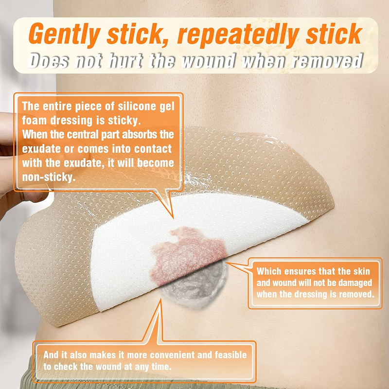 Silicone foam dressing is easily removed without pulling the skin, easy to observe the wound.