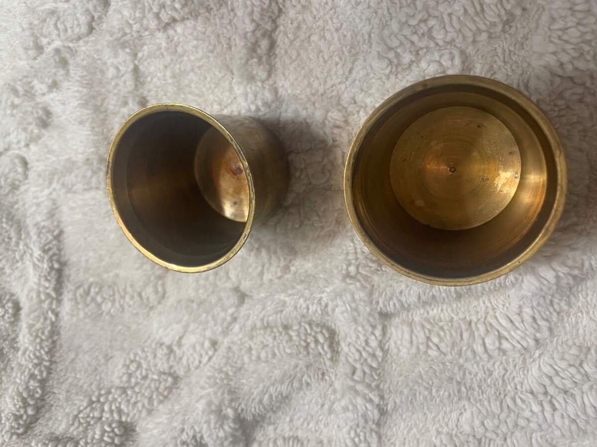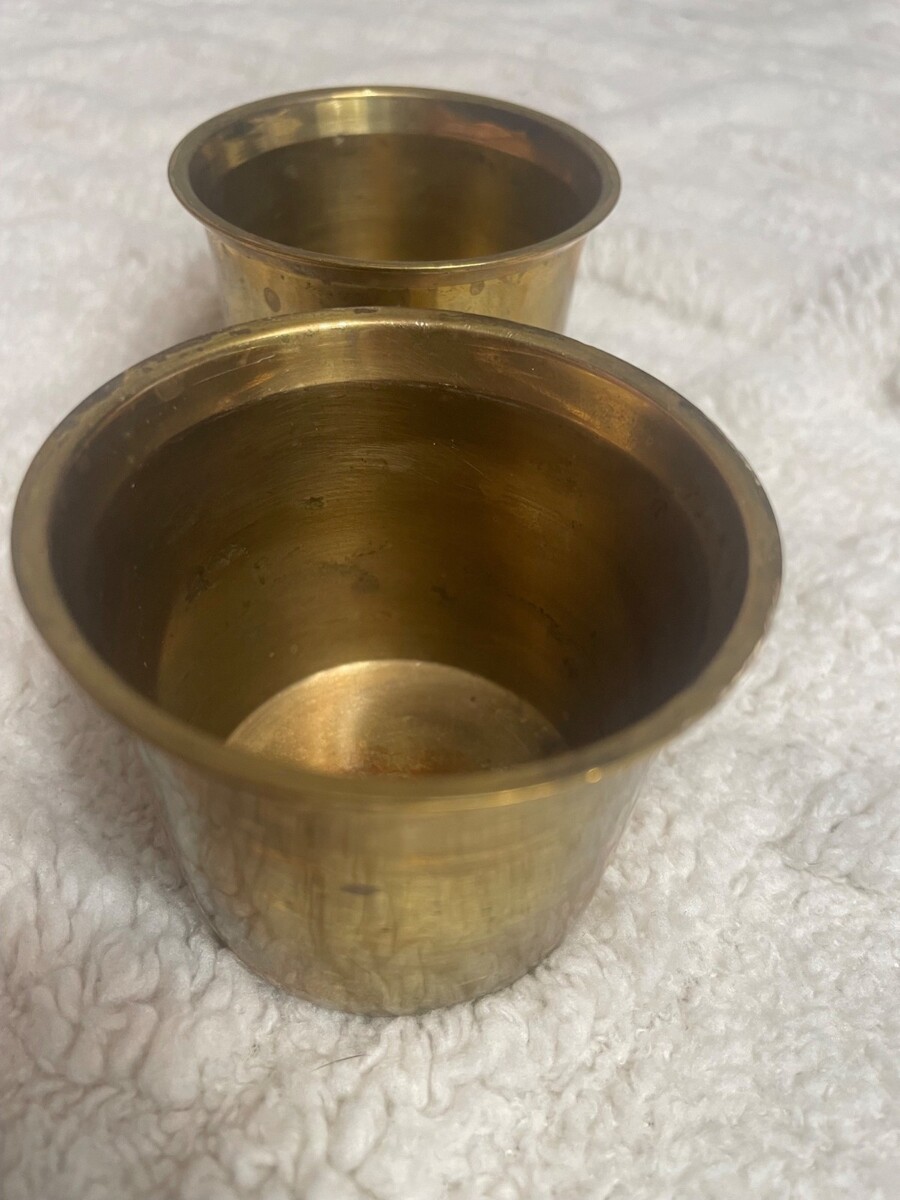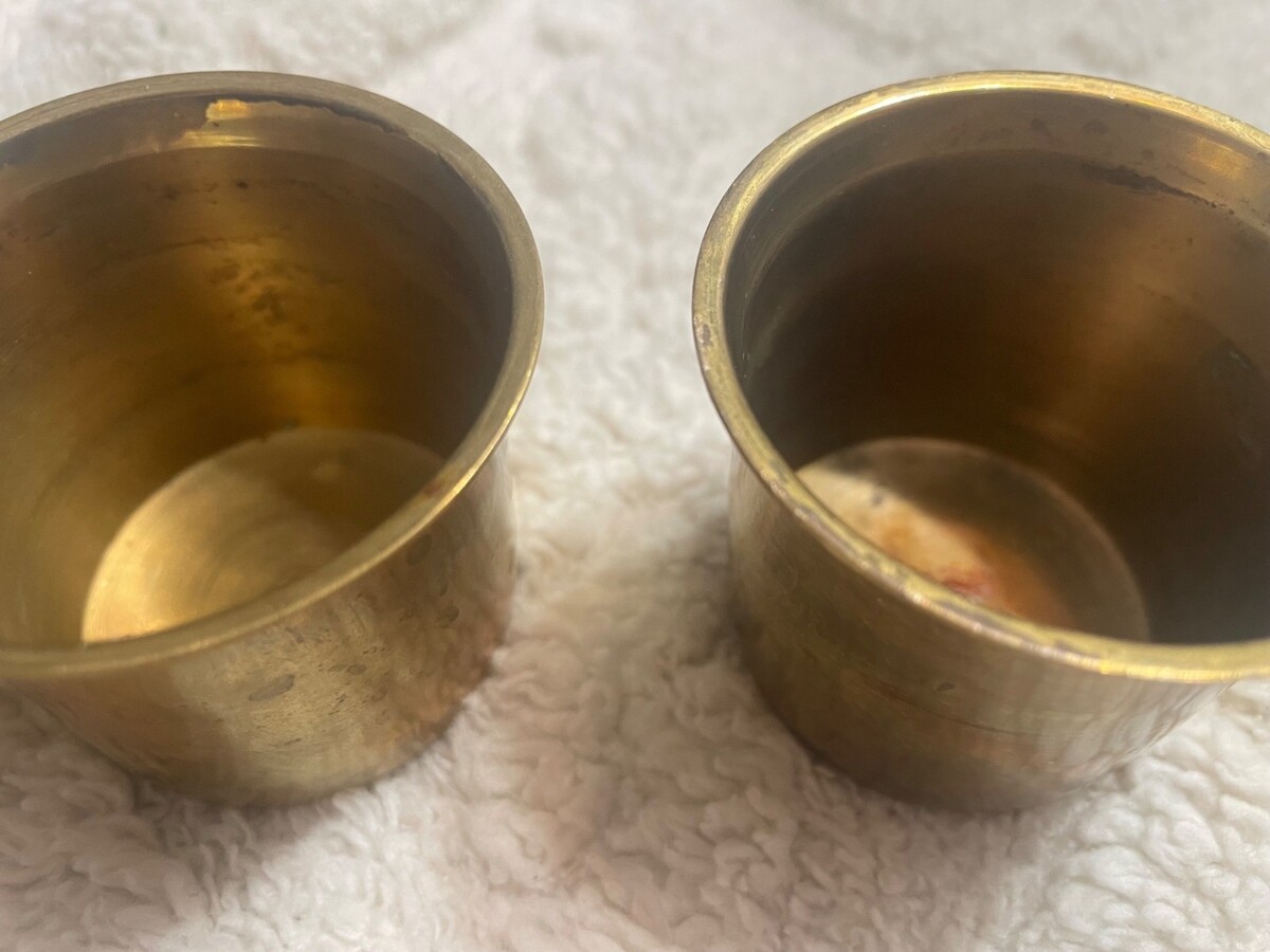 Set of 2 Vintage Solid Brass Votive Tea Light Candle Holder Cups Made in India