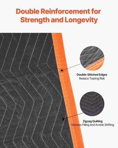 Reinforced Construction: Designed with double-stitched binding and zig-zag quilting, the moving blankets are strong at the edges and tear-resistant. The stitching secures fabric and filling together, boosting strength and ensuring long-lasting durability