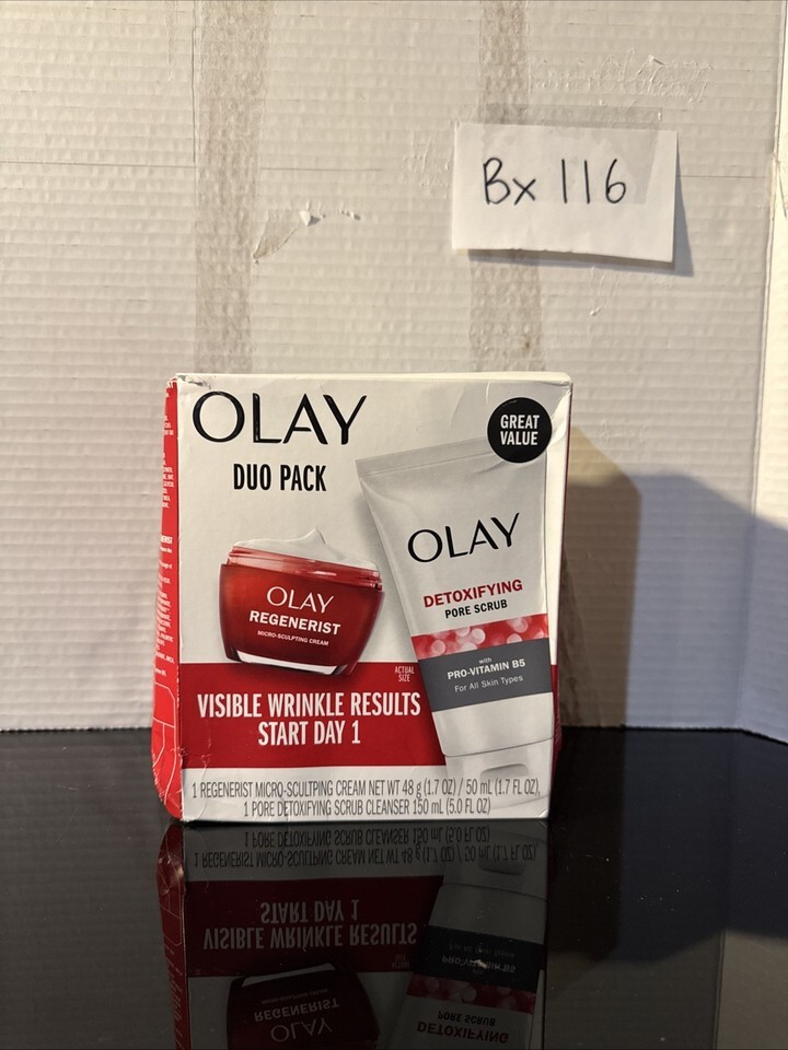 Olay Duo Pack Regenerist Micro-Sculpting Cream 1.7 OZ Detoxifying Pore Scrub 5oz