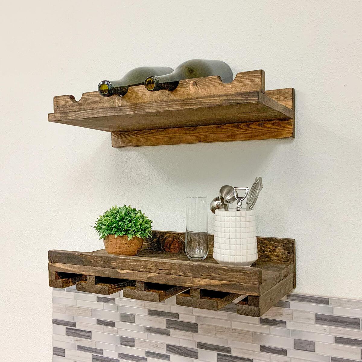 Intrinsic Haven Cask & Timber Wall Mounted Wine Stemware Glass Holder with Solid