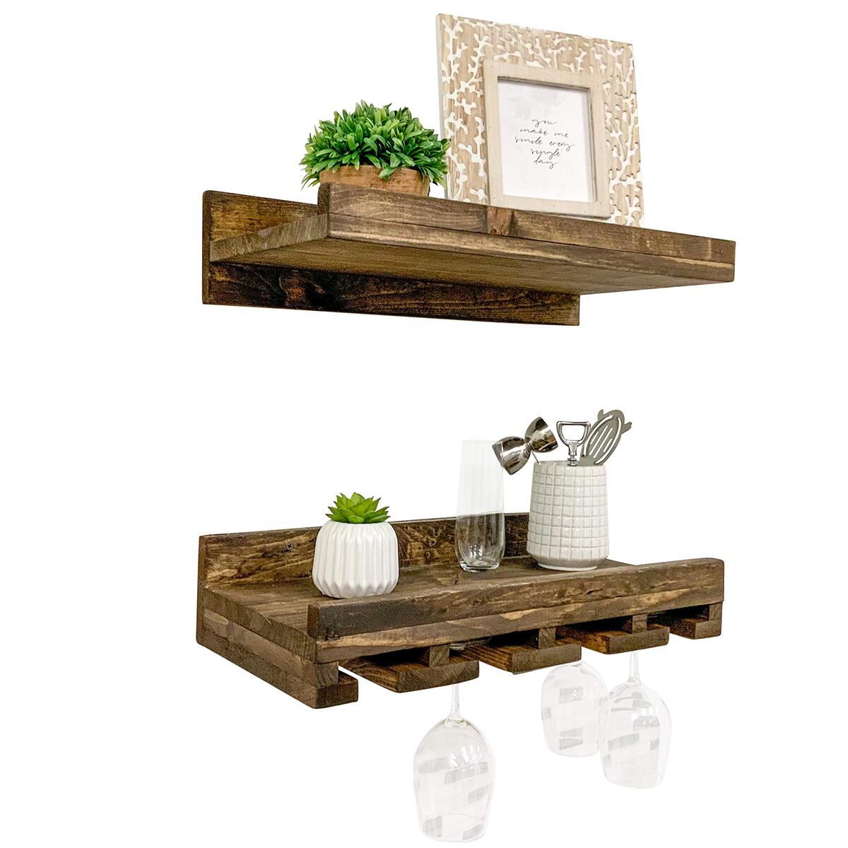 Intrinsic Haven Cask & Timber Wall Mounted Wine Rack with Stemware Glass Holder