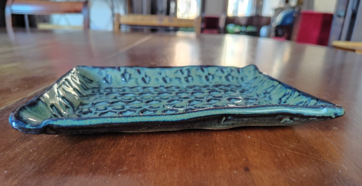 A nice dresser or trinket tray from my in-laws' house. Indented pattern.