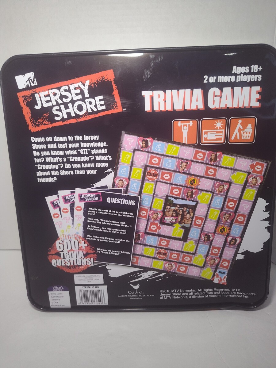 Test your knowledge of MTV?s hit reality series with the MTV Jersey Shore Trivia Board Game by Cardinal! Featuring 600+ questions based on iconic moments, cast members, and unforgettable quotes from the show.