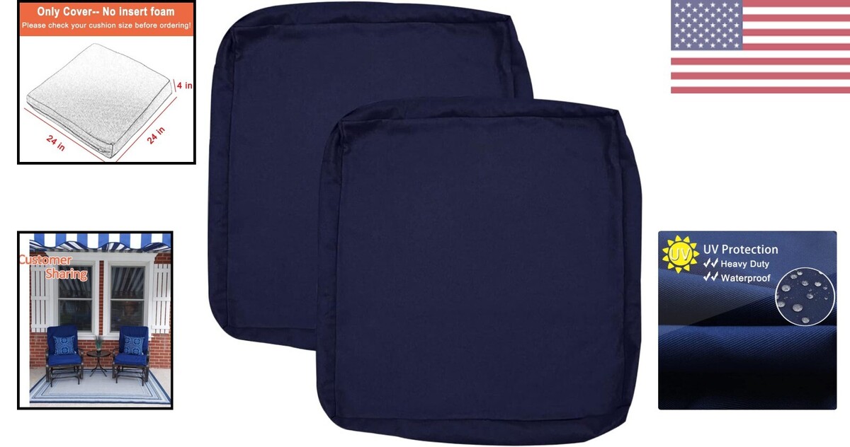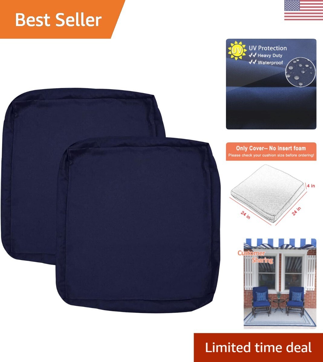 Waterproof Patio Cushion Cover Set - Durable Dark Blue Polyester 24x24 Inch 2-Pack