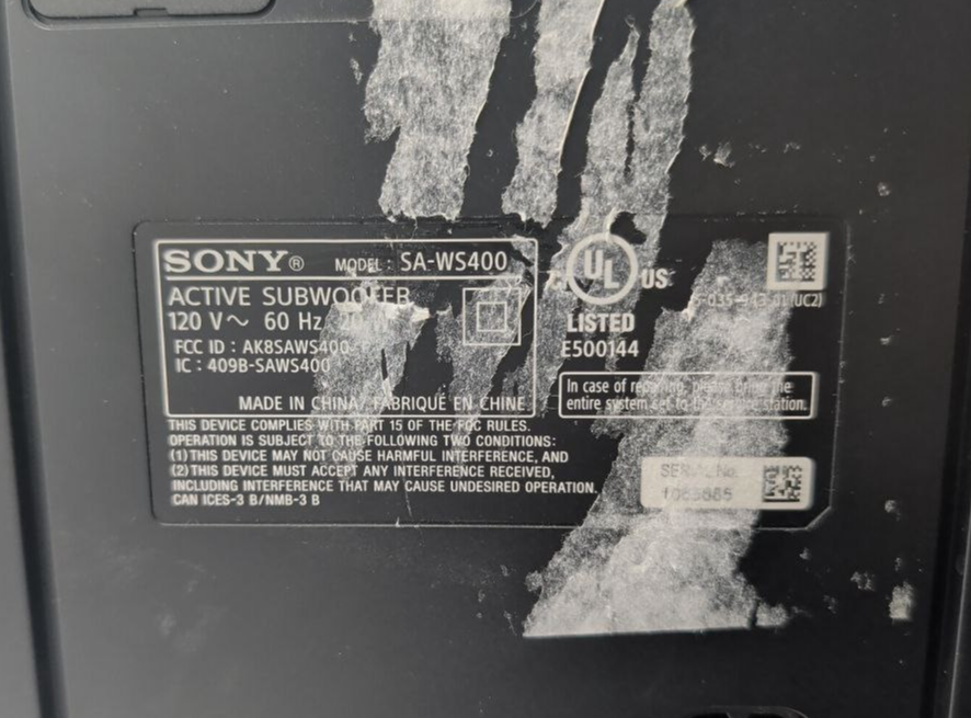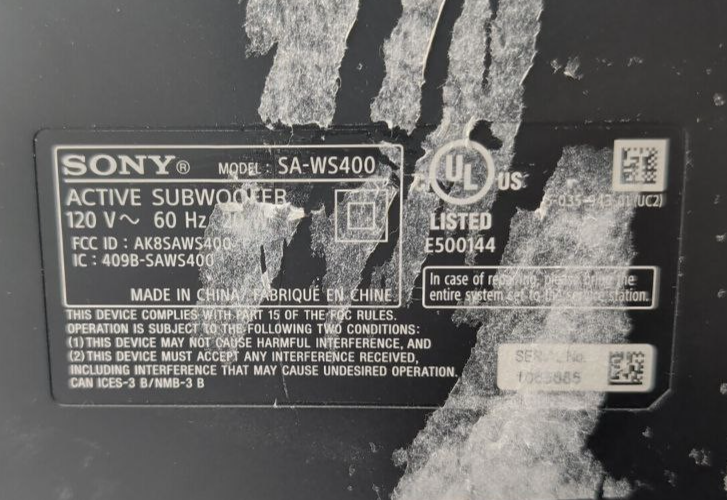 Compatibility: Compatible with Sony sound bar systems originally equipped with the SA-WS400 subwoofer (e.g., Sony HT-S400 2.1ch Sound Bar)