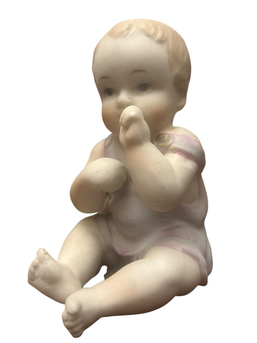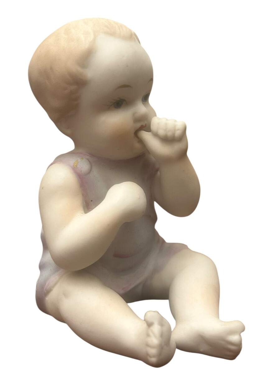 Bisque Porcelain Seated Baby Figurine 4" Piano Baby Vintage Collectible