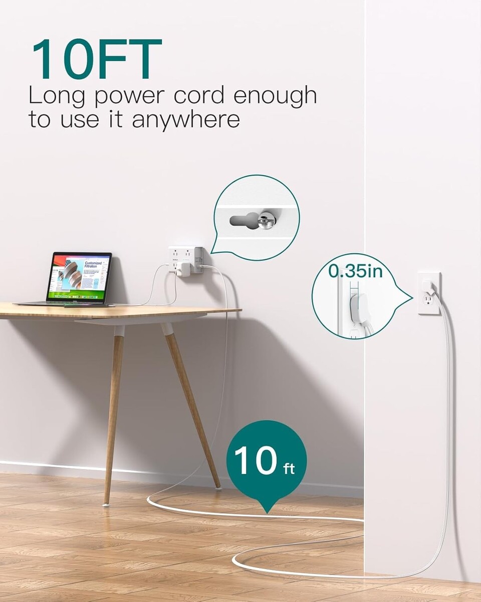Wide Space Outlets Space Save - With the 3-side design, each AC outlet has 2.2 inches space in between, larger than other 1.5-inch/1.8-inch sockets. This makes it perfect to fit big adapters and suitable for all kinds of equipment. The compact size (5.2 x 3.7 x 1.2 In) saves even more space.