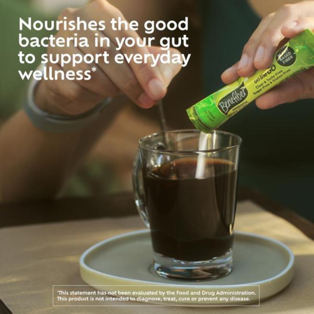 Expiration Date of 03/2027 ? One package of 28 unflavored powder stick packs of Benefiber On the Go Prebiotic Fiber Supplement Powder for Digestive Health, Daily Fiber Powder ? Daily fiber powder supplement that nourishes the growth of good bacteria that exist naturally in your gut to help you maintain good digestive health (1) ? Prebiotic fiber powder that contains no sugar, gluten or artificial flavors ? Unflavored fiber powder that dissolves clear and completely in your favorite foods and beverages (2) ? Benefiber prebiotic supplement made with wheat dextrin (3) ? Three times daily, mix the contents of a prebiotic powder stick into a non-carbonated beverage or soft food and stir well until fully dissolved, for age 12 years and older