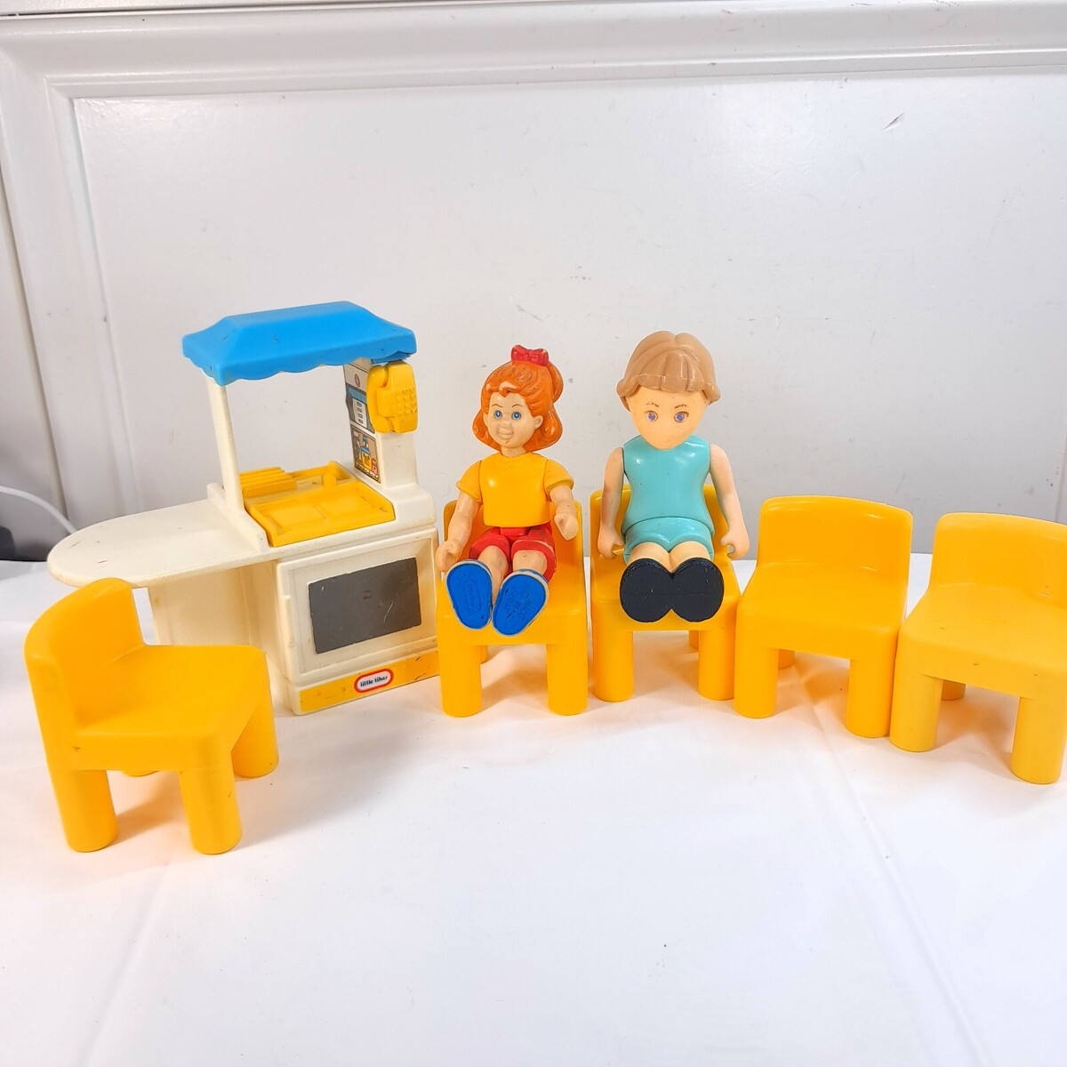 Little Tikes Dollhouse Yellow Chairs Party Kitchen Sister/Mom/Daughter dolls set