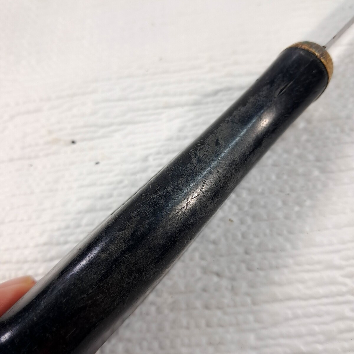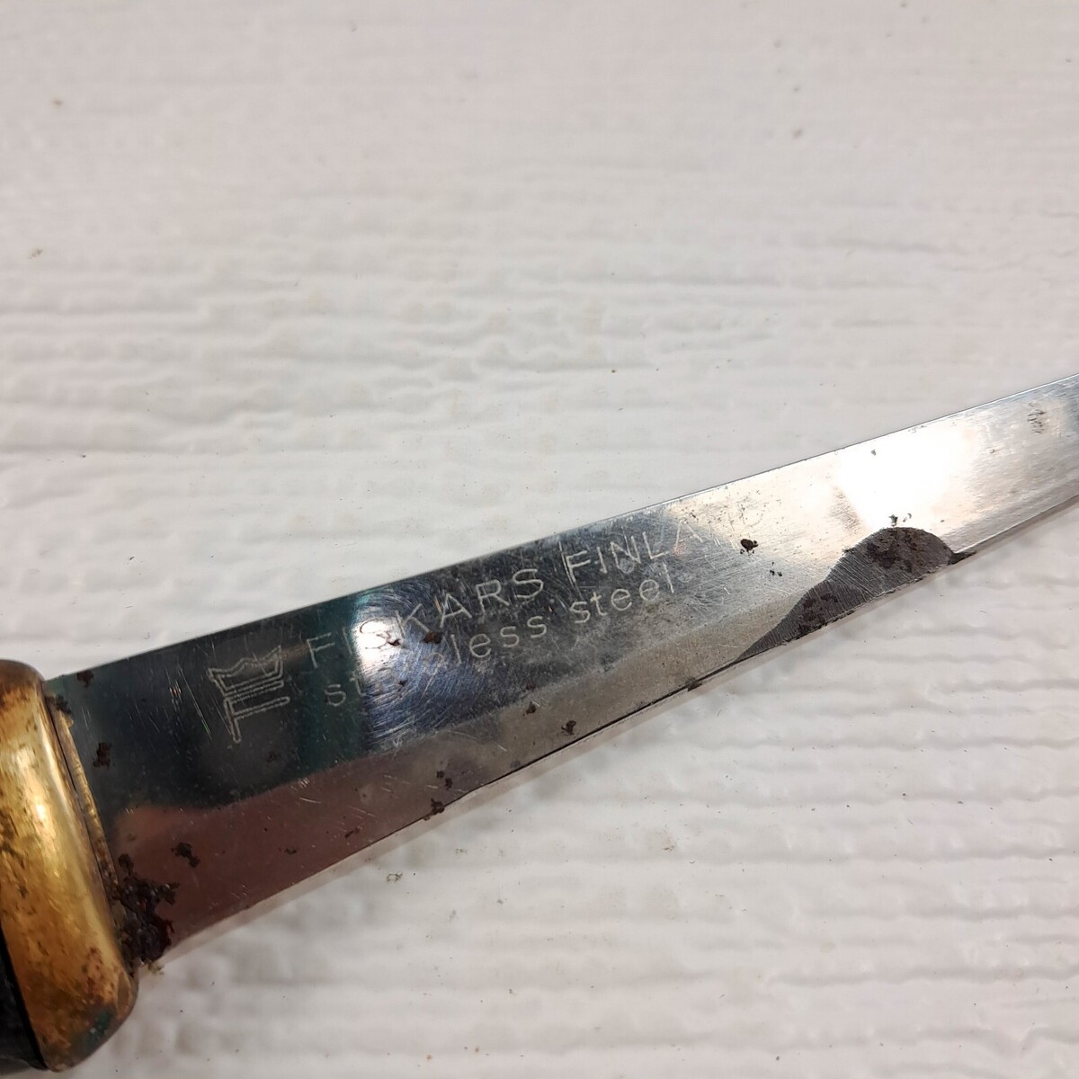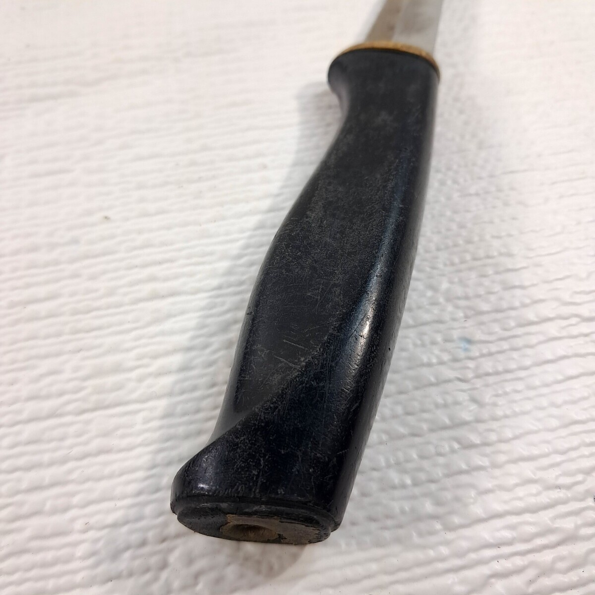 No Sheath. Fair condition. Chunk missing as shown. Gold ring around handle is loose. Heavy wear as shown. See all pics.